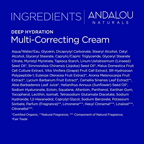 Andalou Naturals Deep Hydration Face Moisturizer, Multi-Correcting Cream, Day & Night Moisturizer for Face with Hyaluronic Acid & Vegan Collagen for Softer & More Supple Skin, 1.7 fl oz
