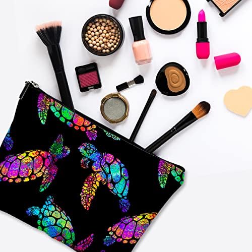 Small Makeup Bag for Purse Cute Canvas Waterproof Cosmetic Bags for Women Zipper Travel Toiletry Pouch-Rainbow Turtle Makeup Bags
